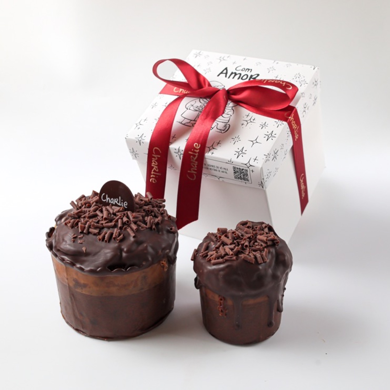 Elaborado com massa de brownie especialmente assado para versão chocotone e recheado com ganache de chocolate meio amargo