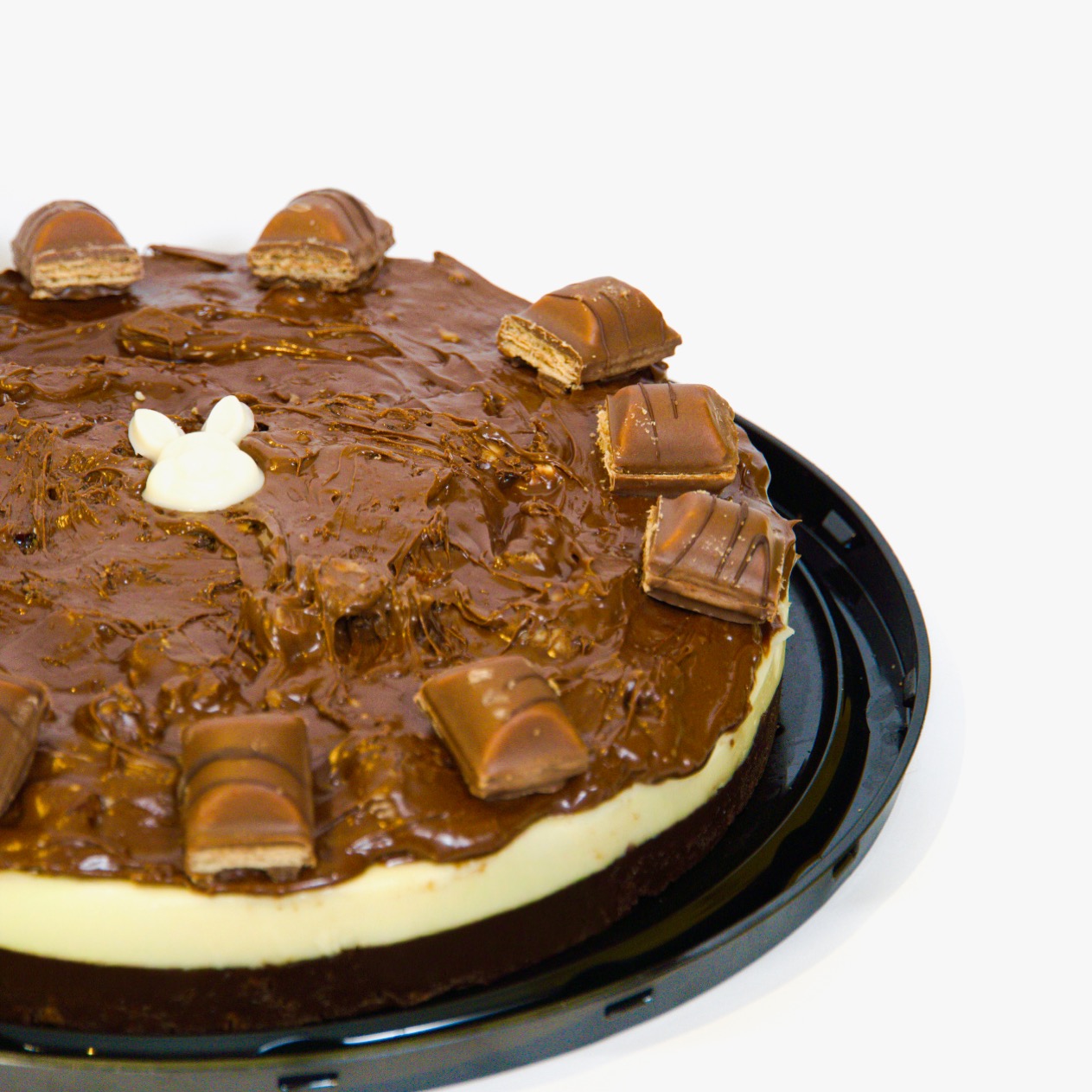 Base de brownie e camadas de ganache de chocolate branco e nutella crocante